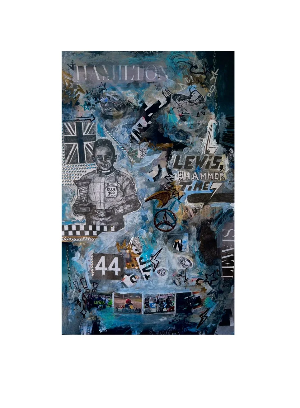 I wanted to pay homage to one of my favorite F1 drivers Lewis Hamilton. Lewis Hamilton is one of the greatest drivers in the history of Motorsport he surpassed tremendous diffculty in a sport build for rich white men. His talent exceeded all expectation earning him tremendous success. I potrayed the catchphrase commonly said by Lewis which is “hammer time” and his current race number. I also have above this a picture of an adult Lewis celebrating one of his many race wins. The bigger drawling of Lewis Hamilton is him in his go carting days I modified this Image to have Lewis Holding the trophy awarded to top F1 driver of the season. My drawling illustrates homage to Lewis hard work in his road of success.