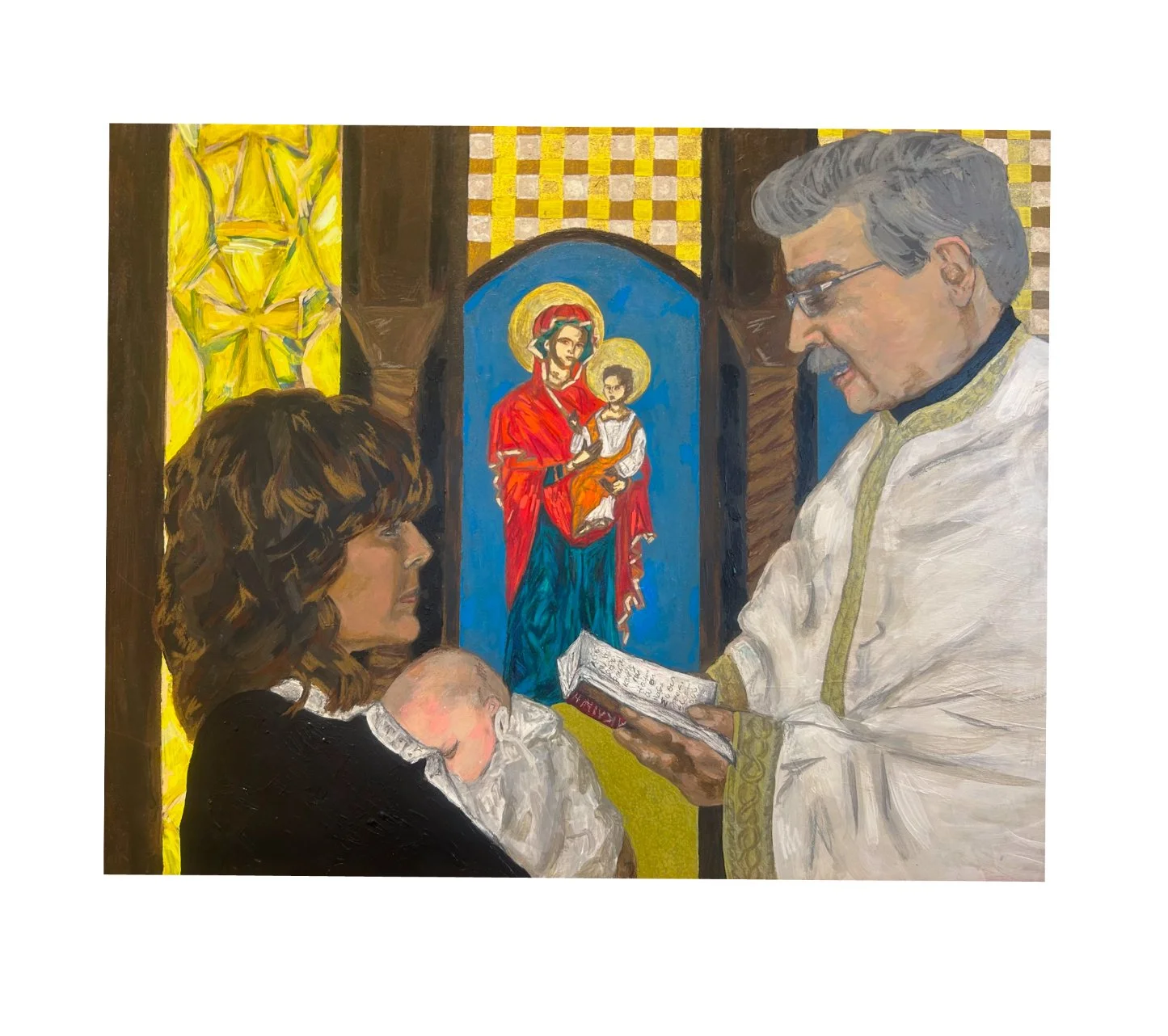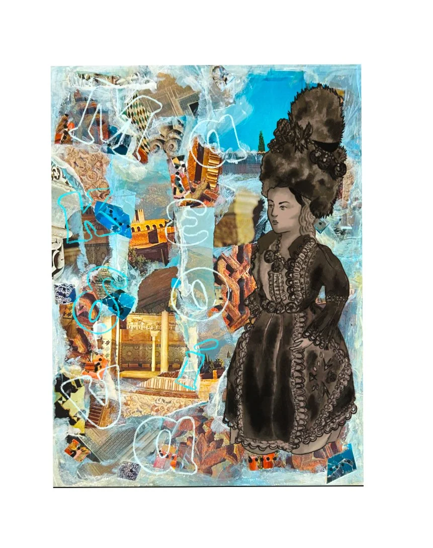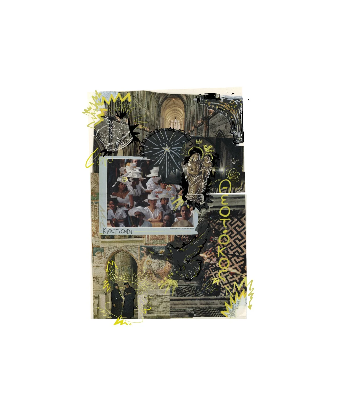 The pieces of this collage come together to highlight my favorite parts of my religion. This piece gives homage to Greek Orthodoxy. I wish for the piece to come togher like a puzzle sewn with meaning. An example of this is the crown I drew seen at the top of the piece exemplifying the wedding crowns.