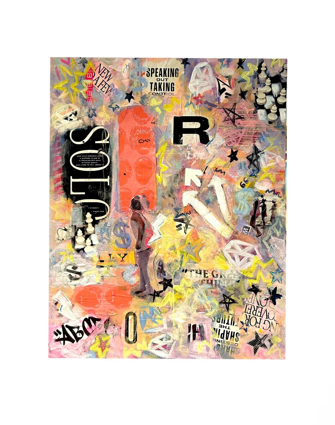 This is a collage. The base was constructed using pieces from several different magazines. Marker and art app websites were used for the writing.