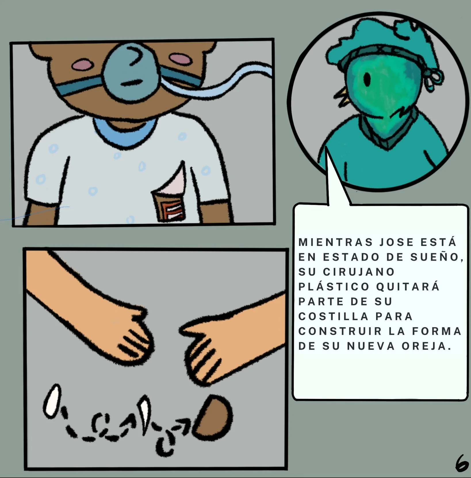 Original graphic comic in partnership with the Lester Foundation and Moore Center illustrating the process of surgery to illiterate Guatemalan youth expecting surgery